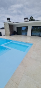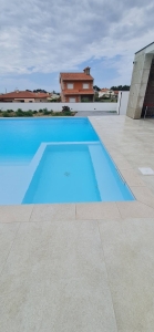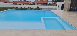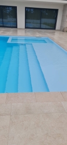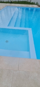 • Este modelo adaptado dispõem de uma praia com aproximadamente 0.35cm, no seguimento da praia foi construida uma escadaria para facilitar o acesso à área de natação.