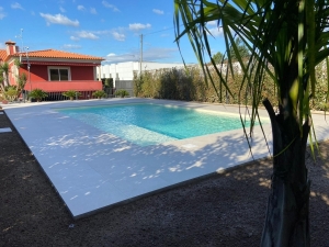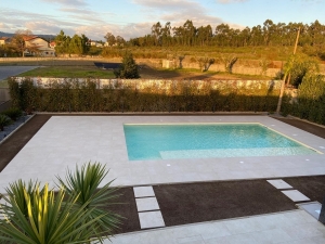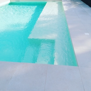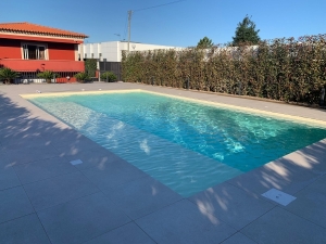 Este modelo de piscina dispõem de uma praia com degraus incorporados, facilitando assim o acesso à área de natação.