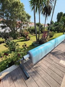 Com aplicação de uma cobertura térmica e de uma bomba de calor, a água da sua piscina estará sempre à temperatura que deseja.