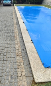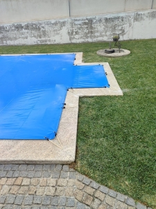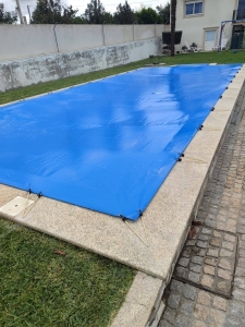 Cobertura 580g m2 com abertura central para escuamento de água proveniente da (chuva).
