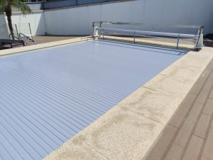 Esta cobertura evita a evaporação da agua, assim como bloqueia a entrada da luz solar o que impede a formação de algas e micro-organismos indesejáveis, assim sendo irá poupar em produtos de limpeza e manutenção.