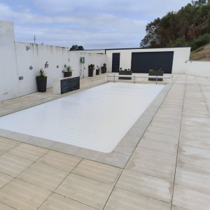Esta cobertura evita a evaporação da agua, assim como bloqueia a entrada da luz solar o que impede a formação de algas e micro-organismos indesejáveis, assim sendo irá poupar em produtos de limpeza e manutenção.