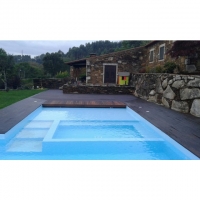 Composta por uma ( praia ) iluminada com 0,35 cm de água para aplicação de espreguiçadeira, no seguimento da praia dispõem de uma adaptação ( jacuzzi ) tornando a piscina um espaço completo para desfrutar o máximo dos dias de calor.